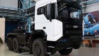 One of the newly produced Russian Kamaz-6350 logistic vehicles with the specialized K-5350 armored cabin.